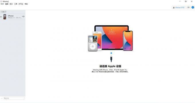 相信大家在使用imazing软件时有时会出现与手机连接不上的情况,在软件界面会提示请连接Apple设备,如下图所示,这是怎么回事呢?
