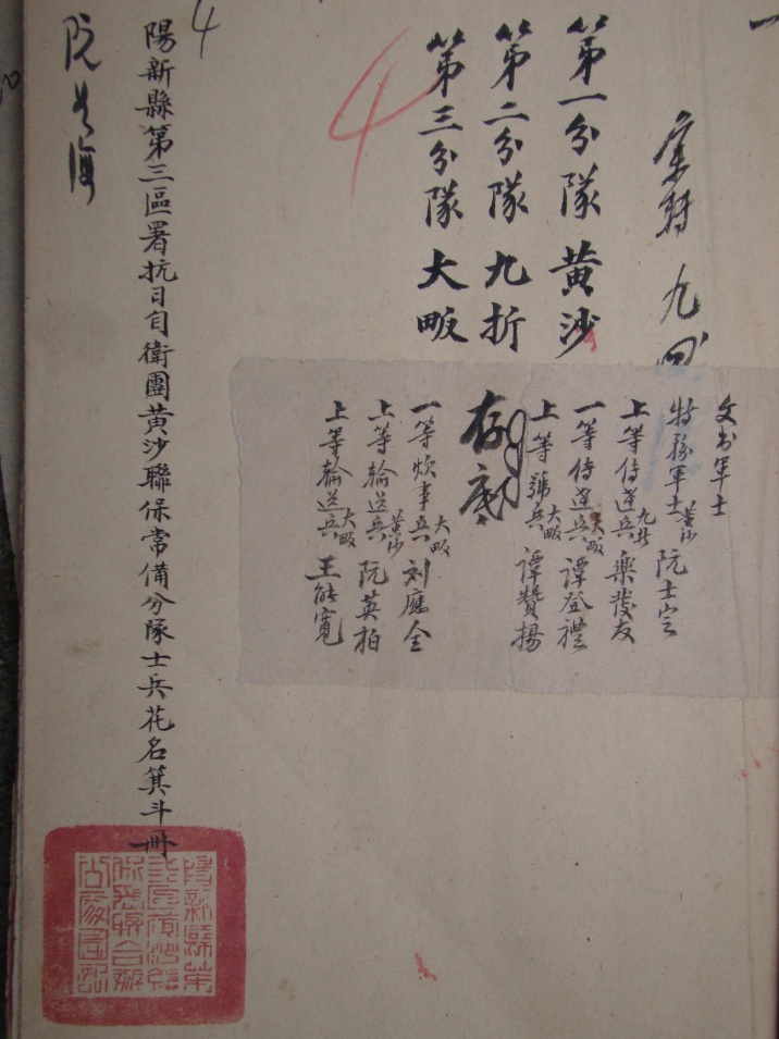 抗战时期太平、慈口、黄沙、梅田、九折、大畈等地报送的,分为联保队、运输队、担架队等。队员级别、年龄、籍贯、入伍年月等信息分列其中,队员都是18至38岁的青壮年